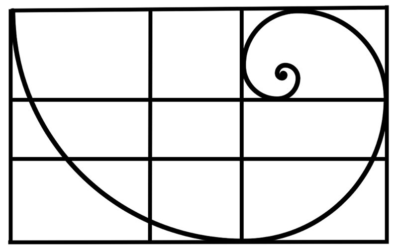 Hình dưới đây mô tả chi tiết đường xoắn ốc Fibonacci với các đường chính 1:1,618. Khả năng cao là bạn đã nhìn thấy nó đâu đó rồi. Sơ đồ xoắn ốc này là một trong những quy luật được các nhiếp ảnh gia tuân thủ nghiêm ngặt để cho ra đời những bức ảnh với “tỷ lệ vàng”.